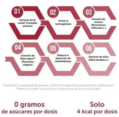 Termogénesis inteligente Ingrediente activo: TOG (Green Tea Polyphenol) y ONR (Oxylia Night Reset). Elaborado con frijol negro, olivo, romero y té verde. 100% natural. Reduce la absorción de los carbohidratos y azúcares. Aumenta la termogénesis en el orgnismo para eliminar tejido adiposo o graso. Protege ante la oxidación gástrica. Ayuda a nivelar el azucar e insulina. Acelera el metabolismo. Kronuit Fire 2.0 ayuda a disminuir el tejido graso del cuerpo mediante un proceso que genera calor mientras duermesy restaura el daño celular. ¿Cómo se toma? Diluir 1 sobre en 250 ml de agua caliente. Tomar antes o durante la cena. Para mejores resultados, consumir 3 veces al día, antes de cada alimento. Una vez preparado, tomar antes de 24 horas. Recomendación: Mezcla Kronuit Fire 2.0 e Inner7 con Yuzim y tómalo por la noche. |