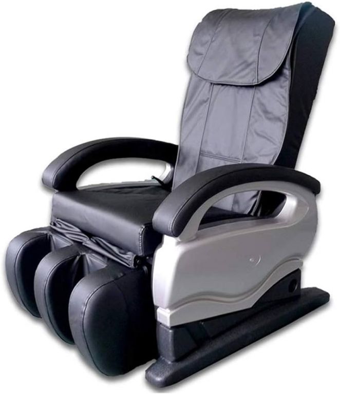 Silla de masaje inteligente de cuerpo completo tipo reposet, diseñado con la función de presión de airbag, compresión de masaje en hombros y brazos, cojin de respaldo y pantorrillas tienen función de calentamiento, de airbag en cadera y piernas y masaje rodante de cadera.